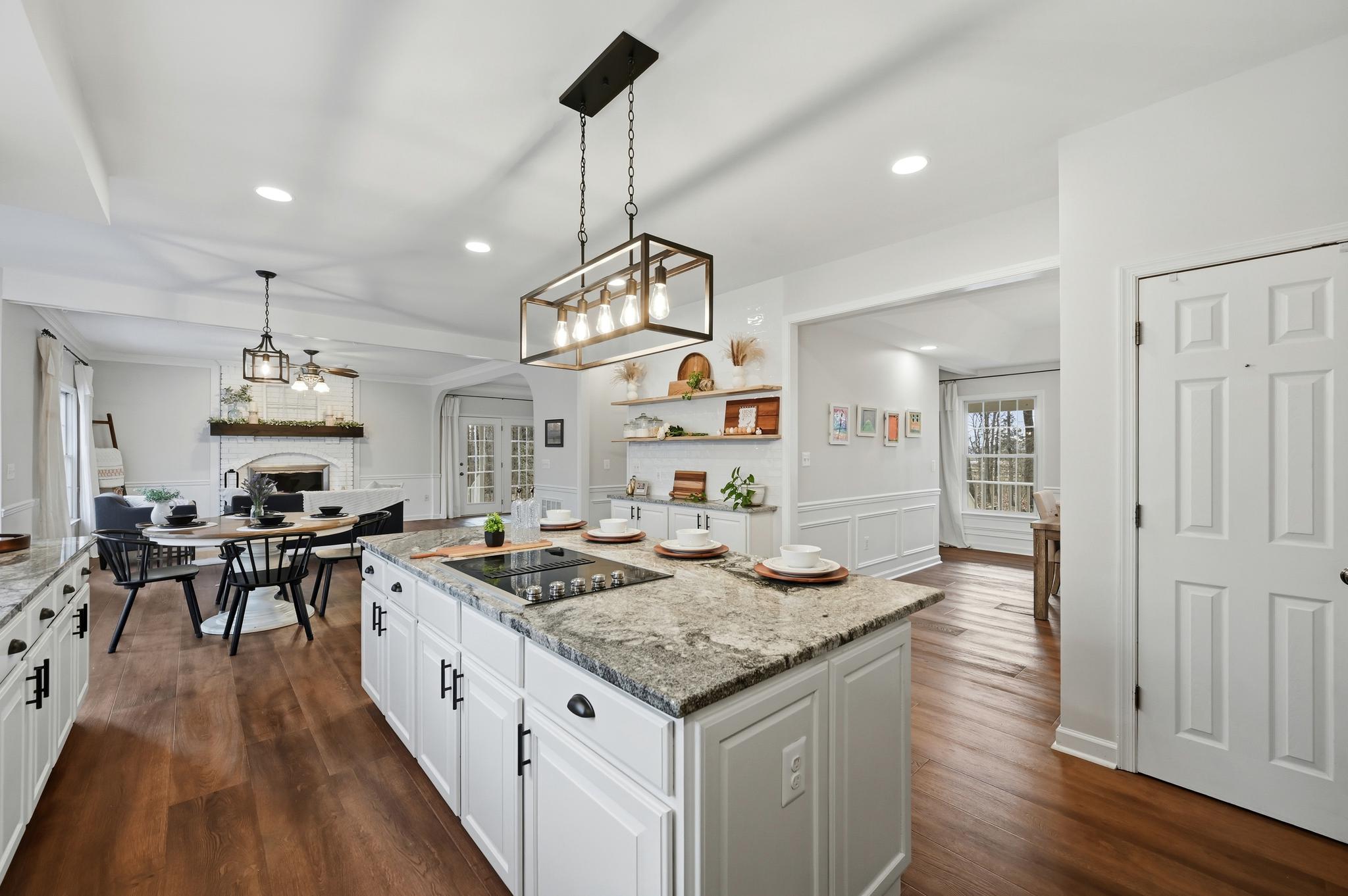 In 2023, we fully renovated the main level with open spaces, beautiful wide-plank wood floors, new granite and backsplash, and open shelving while still offering plenty of hidden storage in the kitchen.Nearly every other space in the home has been thoughtfully updated, from new flooring (carpet, wood and tile throughout), paint, fixtures and lighting. We also replaced the sump pump, well pump and ejector pump (Fall of 2024) and the roof (Fall of 2025). We also opened up the backyard for childhood exploring and created a quarter mile of walking and bike trails through the woods in the front of the house. We have taken great pride in the care of this home. Truly, no surface has been left untouched!