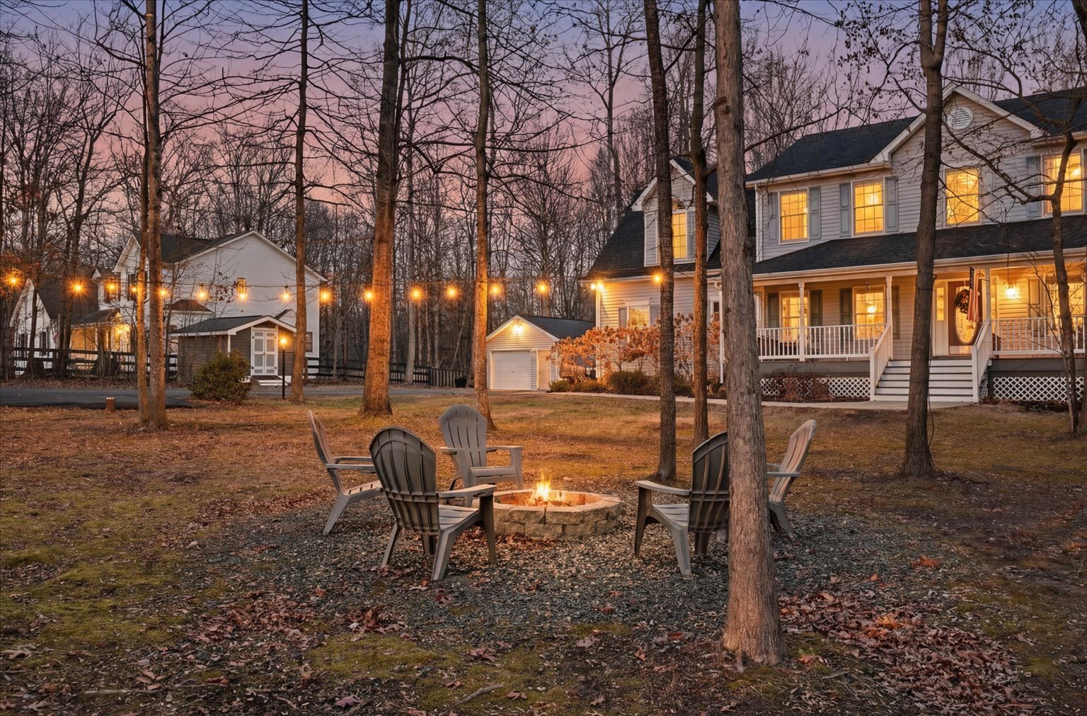 One of the greatest gifts of this home is how beautifully it changes with the seasons. In winter, the property settles into a quiet, peaceful stillness, offering a sense of calm and reflection that is truly restorative. Spring brings a fresh transformation as the house becomes surrounded by bright green trees, renewing the landscape with energy and life—your personal hideaway from the outside world. Summer is vibrant and full, highlighted by incredible hydrangeas that bloom in the front garden making the outdoor spaces feel lush and celebratory. In the fall, the trees are simply breathtaking, with gorgeous gold and yellow hickories and red-leafed oaks creating a warm, colorful backdrop that never fails to impress—especially made beautiful during the “golden hour.”
