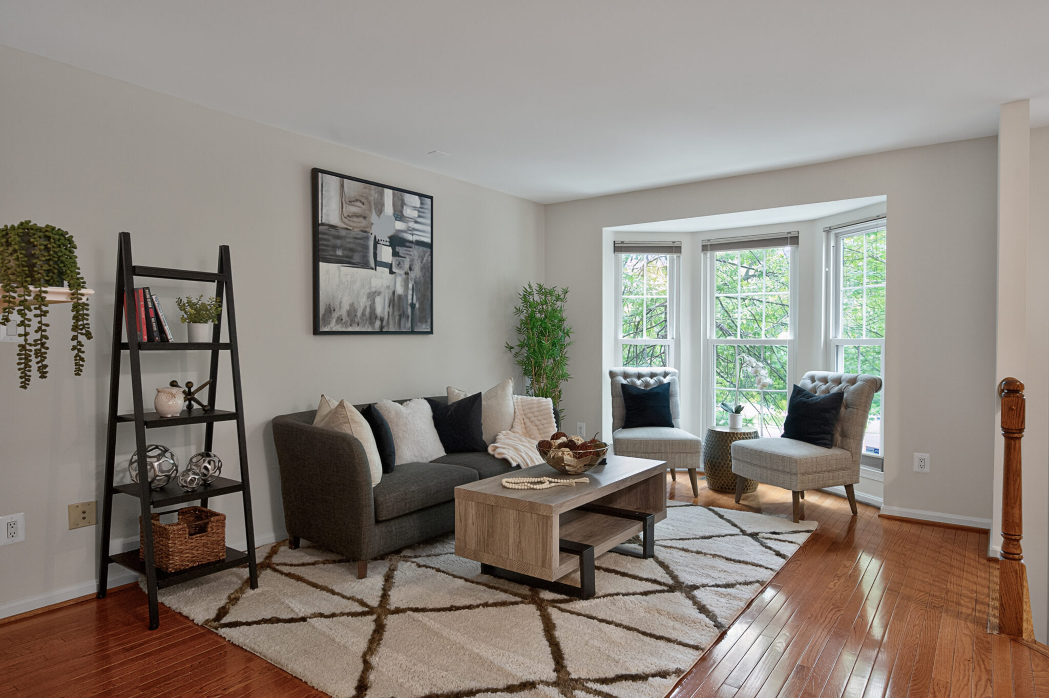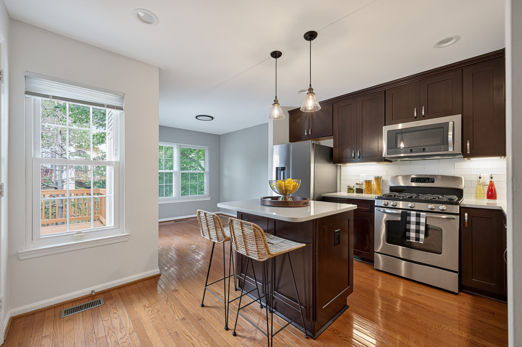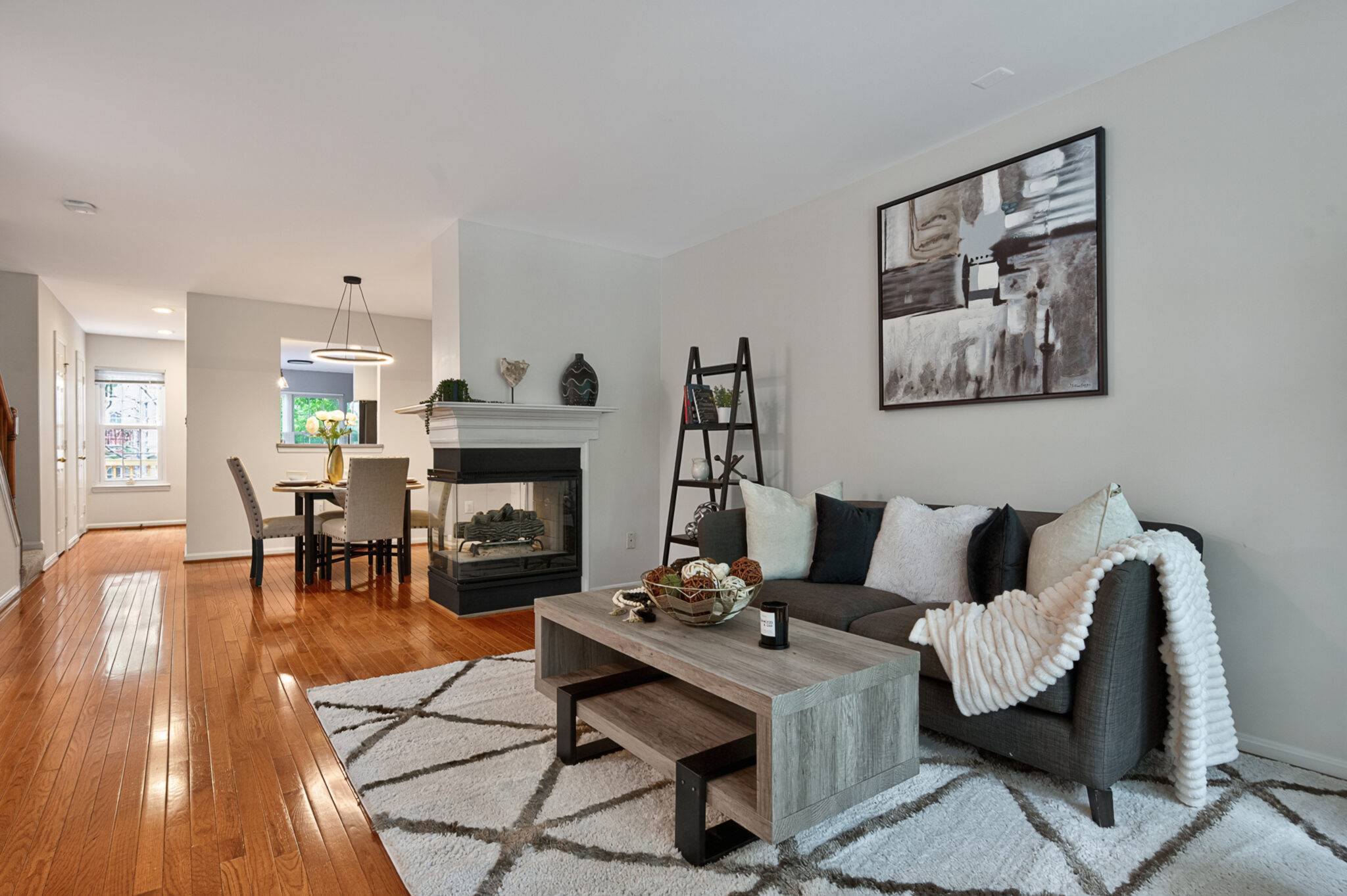Rich hardwood flooring throughout