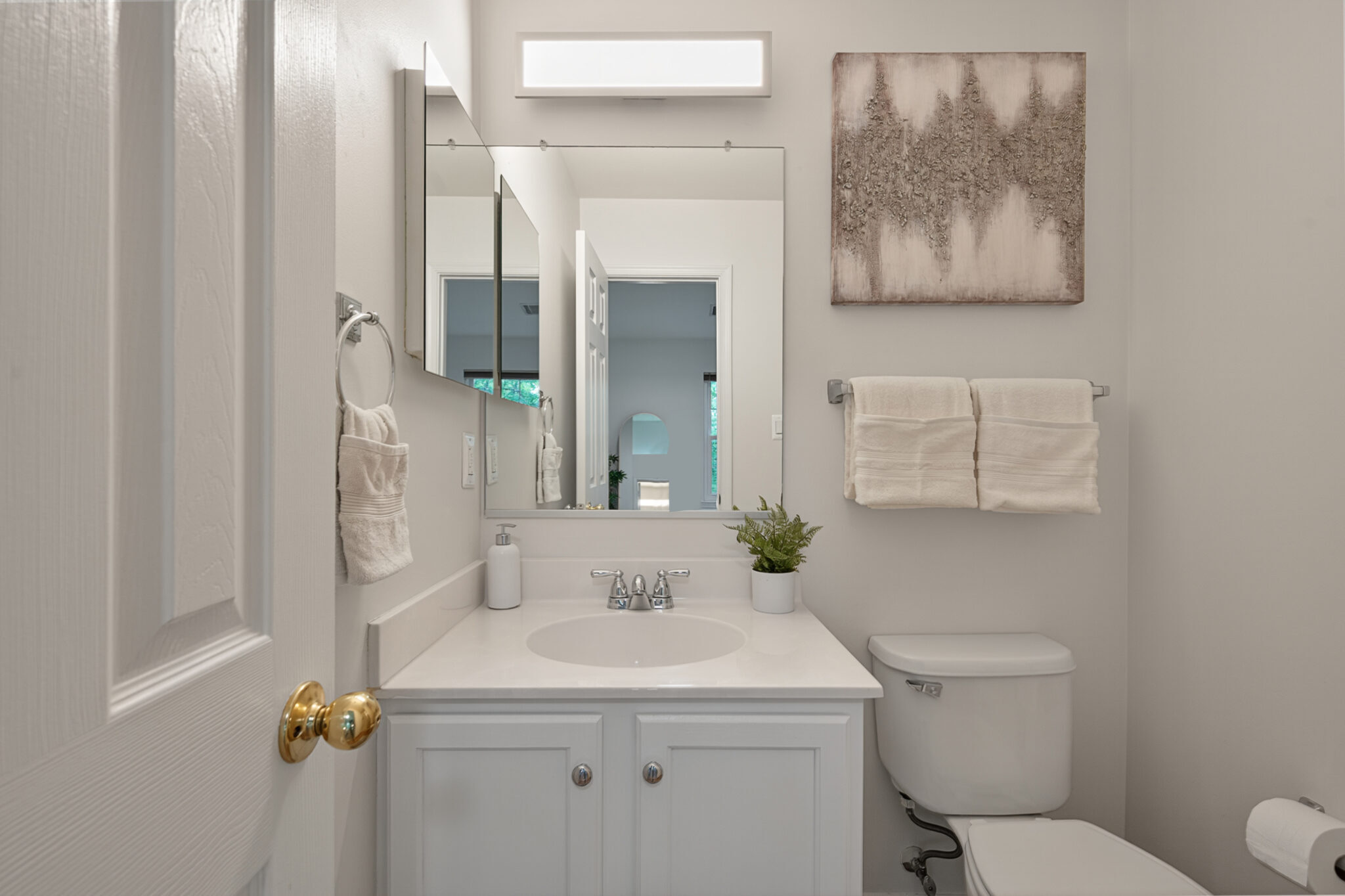 - 2025 - Replaced bathroom flooring, painted vanity, and replaced vanity lighting fixtures