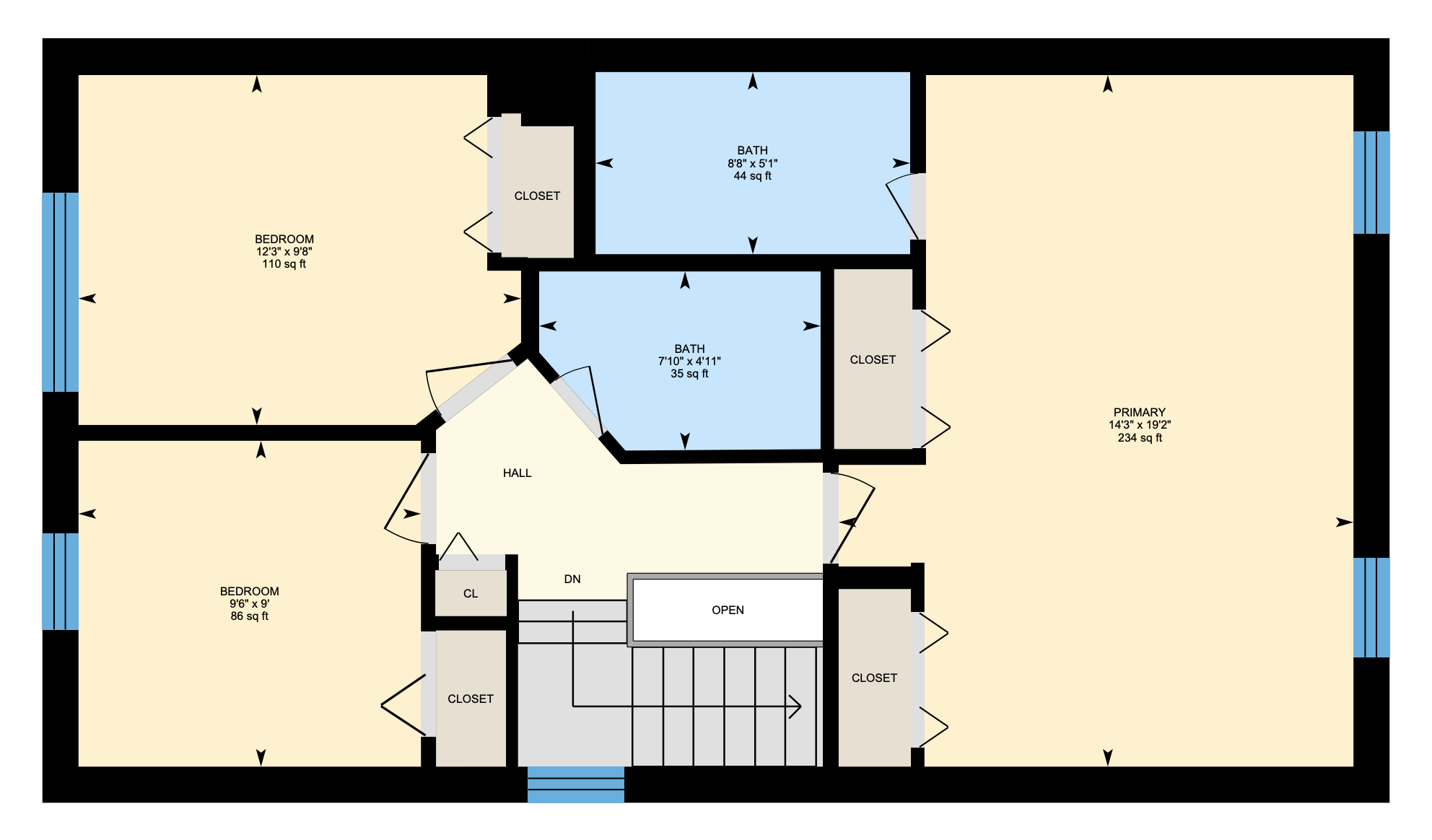 - Primary suite with vaulted ceilings and generous closet space